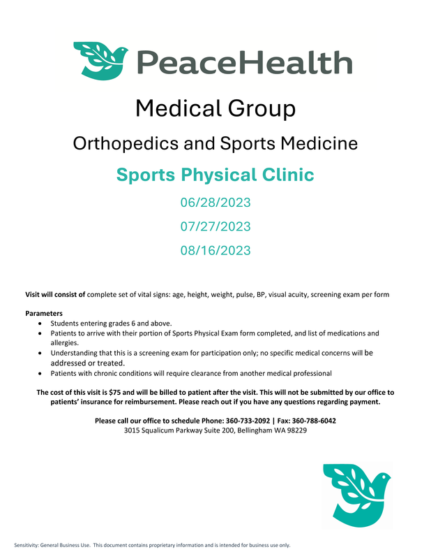 Please call the PeaceHealth Medical Group Orthopedics & Sports Medicine office to schedule: