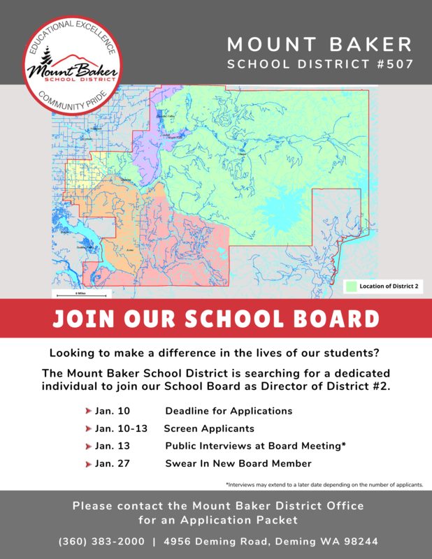 Looking to make a difference in the lives of our students? The Mount Baker School District is searching for a dedicated individual to join our School Board as Director of District #2. Learn more about the MBSD School Board.