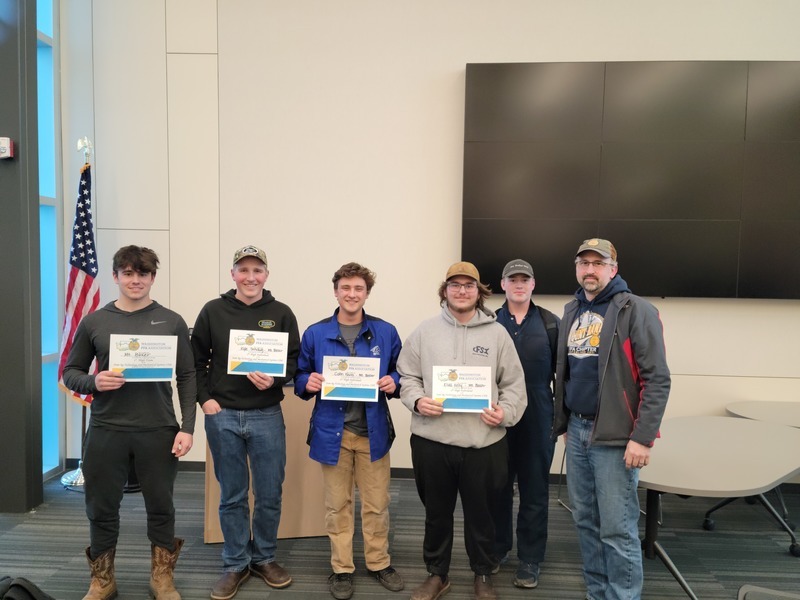For the second year in a row, the Mt. Baker FFA Agriculture Technology and Mechanics team won the state title on Saturday, April 16th in Moses Lake, WA. Students competed in MIG and stick welding, fumigation, surveying and land measurement, small gas engines, electrical controls, electric motors, a difficult team financial problem, tractor parts identification, welding symbols and measurement, and a general knowledge test. A total of 24 teams and 115 students competed from across the state.